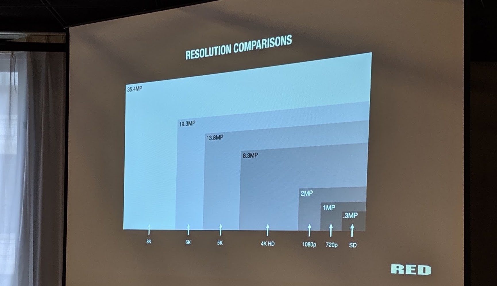 Dan Duran, a post production and workflow specialist at RED Digital Cinema, was also on board with the better quality for professionals, for future-proofing your archive material (until 16K?!) and also for a better image, even on lower resolution screens. Even if you wouldn't be showing the content in 8K right now, as would very likely be the case, he claimed downscaled 8K already looks better. Using the example of Instagram, where all content is compressed to the same size, he argued the benefit of having shot in 7680 × 4320 was clear.