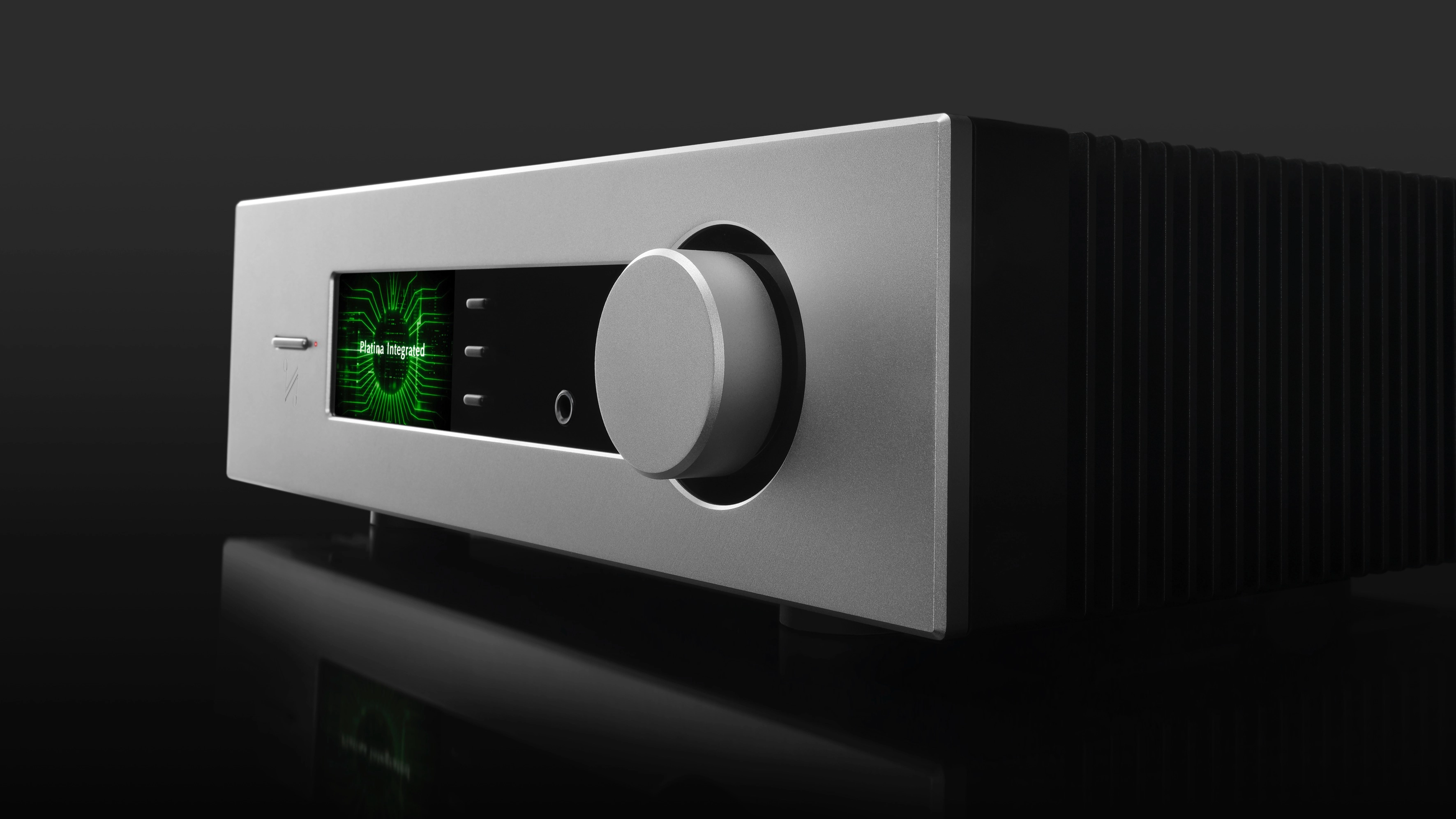 And then there's the build quality. While its fascia design and side-mounted heat sinks echo Quad amps of old, it has a new industrial design, with a steel chassis, thick anodised aluminium front panel and vibration-damping feet. Its 4.3-inch screen has ‘sci-fi green’ as its signature colour across the Platina Series, and can be set to show the volume, real-time signal levels, logos and more.