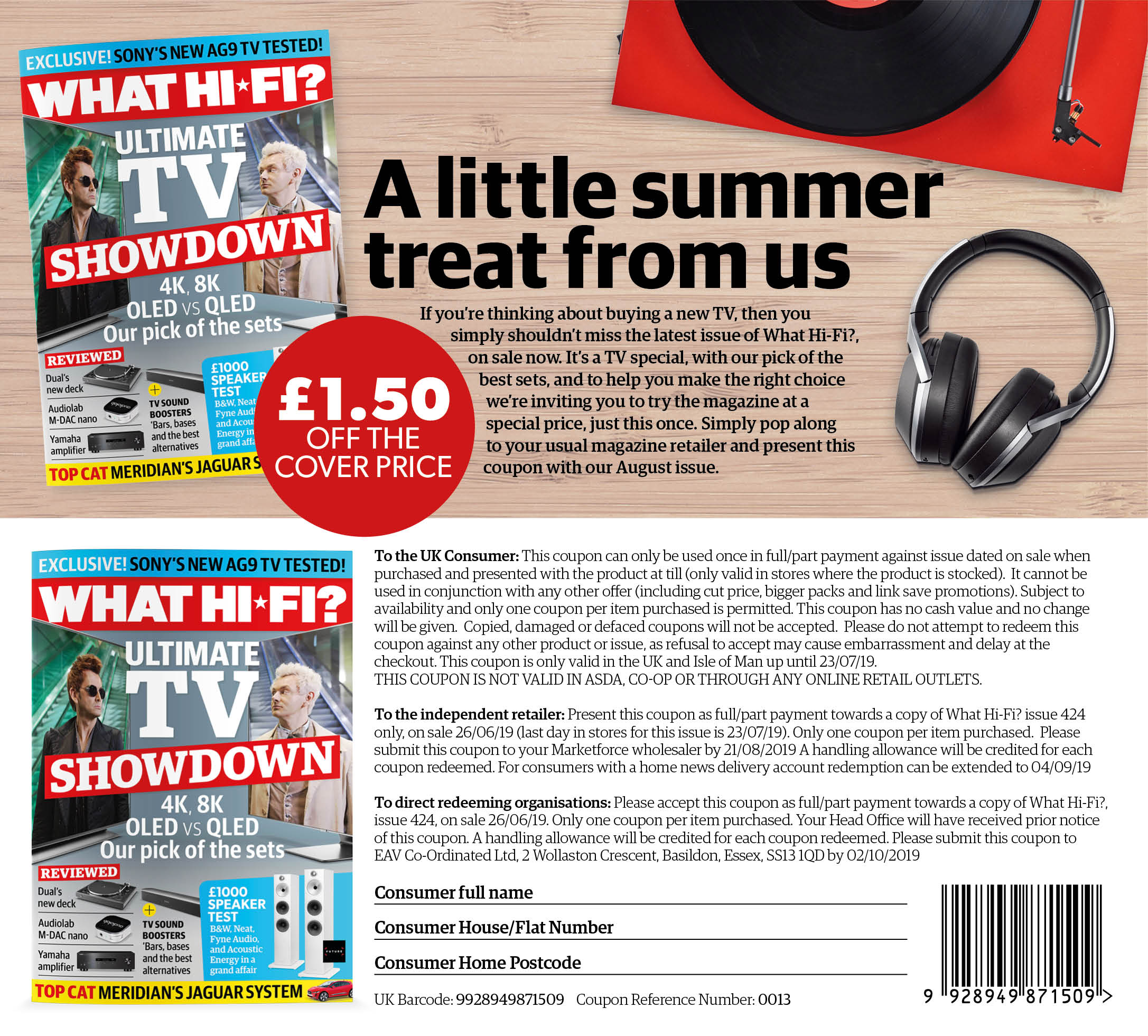 To get the discount, all you have to do is drag the image of the coupon above onto your desktop, print it off, fill in the bottom part with your name and address, take it to your local retailer and present it at the till with your copy of the magazine.
