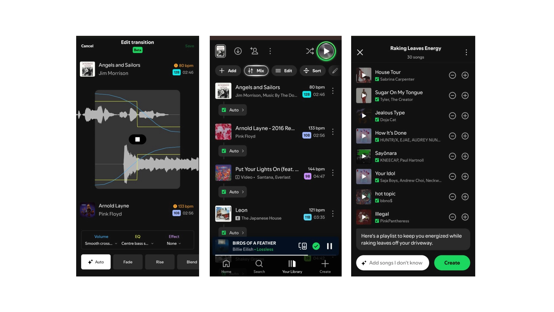 Spotify has also recently gone pretty heavily into personalisation and AI functions that allow subscribers to, for example, add transitional effects between songs, create their own playlist cover art, and generate their own AI-curated playlist simply by typing in their genre and mood or other prompts.