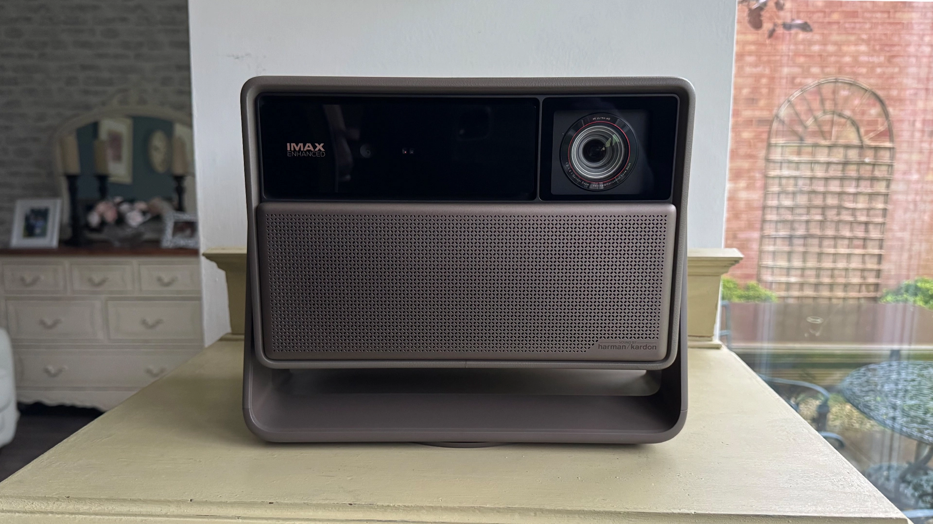 The words 'Sound By Harman Kardon’ at the bottom right of a grilled area over the bottom half of the Horizon 20 Max’s fascia alert you to the presence of a potentially unusually powerful sound system by projector standards. This turns out to comprise a 2 x 12W speaker arrangement with DTS Virtual:X and Dolby Audio decoding – with the cubic design providing more room for sound to breathe than regular projector designs do.